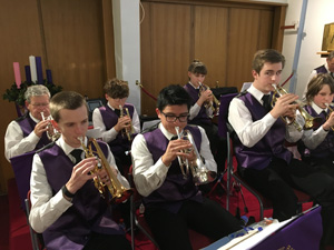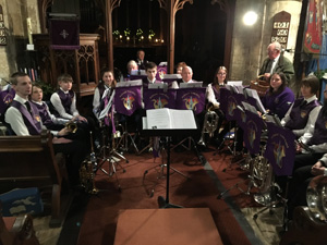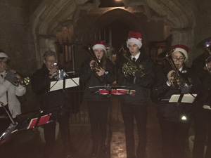 17th December - Concert at Holy Trinity Church Very pleasant return visit (after a couple of years) to the Holy Trinity Church, Holbeach. Initially the Church wanted some unusual carols which we did not have. Our MD aquired the piano part and created 4-part arrangements of them. The Church then changed its mind and reverted to the more usual carols. The priest also told us in the week before the concert that he wanted the band's musical items to be restricted to Christmas hymns with nothing secular. This caused a bit of an issue as we had expected to play the same programme as on 2nd December (above). We had only 4 pieces to play (plus all the carols) so we played Christmas Joy March, When Christmas Sleeps, Mary's Boy Child and Christmas Piece (based on the Sussex carol). Once we again we had a lot of good comments.