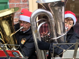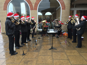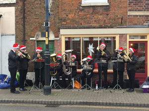 2nd December - Concert at St Nicholas FayreOur annual visit to All Saints Church, Holbeach for their St Nicholas Fayre. It was a busy and active place. We played a mixture of festive concert pieces. We had been due to play at 2.00pm but, a couple of weeks ago, they asked us to start at 2.30pm. We arrived at 2.00 to set up and found a singer and accompanist set up where we were due to play. We were told that things were running late! And when the singer finished the Ukelele Group took over. They finished just after 2.30 and we had to wait for them to clear the area before we could set up. We set up quickly but it was nearly 2.45 before we started. After 30 minutes we had a break and our Training Band took over for 15 minutes. We returned for another 30 minutes and finished about 3.45 as stalls were closing down.