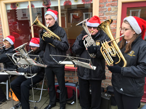 23rd December - Carols at Caffe Aurora, Holbeach A new venue for us. We were asked to play carols outside this delightful coffee shop on the main road in Holbeach. We were made very welcome. We had a slightly reduced band, knowing thatthe area was limited. But we managed to fit in and left room for passers-by. A very successful morning. We finished at 12 to allow the local tribute act 'Pavornotti' to take over his regular spot.