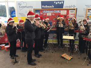 3rd December - Carols at Sainsbury's, Spalding Our first carol playing of the season playing outside Sainsbury's store in Spalding. Nice balanced group. Weather was kind but a bit chilly.