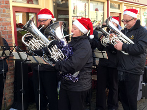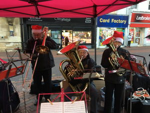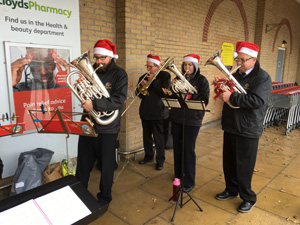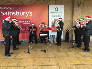 A group from the Band played carols at Tescos in Holbeach. It was a cold day but the band were able to play in the entrance porch which gave some protection.