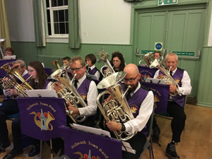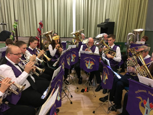 The Band's fund-raising Bingo sessions are held once a month (usually on the 2nd Friday). They are run by band members who provide refreshments during the half-time break. At the December session a group from the band goes along and plays carols during the break.