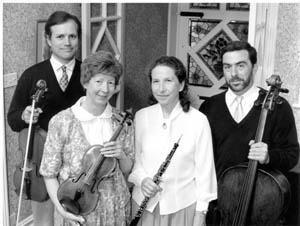 in F (K.370) W.A.MOZART (1756-1791) Mozart's famous Oboe Quartet was written in Munich at the time that his opera Idomeneo was produced in around 1781. It was composed for Friedrich Ramm, who had met Mozart earlier in Mannheim where Ramm was principal oboist at the court orchestra. Mozart clearly developed a love of the instrument, as four years earlier he had dedicated another major work, his Oboe Concerto in C, to a fine oboist in the Salzburg orchestra. The Oboe Quartet is quite a different composition from the works which Mozart had written for flute and strings only a few years earlier. The oboe here is treated as an equal partner in the ensemble, in contrast with the flute quartets where the soloist tends to assume a more dominant role. Though this quartet is a three-movement work (with no Minuet), there is considerable contrast of expression within it. The first movement, Allegro, though graceful and stylish, affords plenty of opportunity for neat agility from the oboist. The second movement, Adagio, in the contrasting key of D minor, is in the style of an expressive lament. The final Rondeau is a dance movement based on a lively oboe theme which is later developed with florid scales and passage-work to bring the piece to a wholly satisfying conclusion: Sarah Francis
