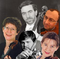 Last season we were delighted to invite the well-known Tagore String Trio to South Holland Concerts in partnership, on that occasion, with celebrity oboist Sarah Francis. However, following recent successful recordings of music for string quintet by Krommer which featured two violas, an enlarged ensemble - the Tagore String Quintet - has been exploring the important and varied repertoire for string quintet with its characteristic beauty and richness of sound. We are extremely privileged to welcome the Tagore Trio players back to South Holland with their additional colleagues, in order to share with us some of these magnificent masterworks for string quintet this evening. We are extremely privileged to welcome the Tagore Trio players back to South Holland with their additional colleagues, in order to share with us some of these magnificent masterworks for string quintet this evening. Frances Mason (violin) was an international award winner, including the Tagore Gold Medal at the Royal College of Music. She has performed as soloist at Promenade Concerts and led the Music Group of London and the Rasumovsky Quartet. A violin professor at the Royal College of Music, she founded the Tagore String Trio in 1996. Anne Bradley (violin) appears regularly as soloist and leader with ensembles in St Martin-in-the-Fields and the Purcell Room and works with several chamber orchestras including Guildhall Strings. She has been a member of the Bingham String Quartet since 2000 and also leads the Caspian Quartet. Martin Outram (viola) has played twice before at South Holland Concerts - on both occasions as violist with the Maggini Quartet with whom he has toured widely and made many hugely successful recordings on the Naxos label. He has performed as guest with the Coull, Alberni and Allegri Quartets, and as soloist and principal viola with all of London's premier chamber orchestras. He has been a professor of the Royal Academy of Music since 1984. Jonathan Berritt (viola) studied at the Royal Northern College of Music. He was the viola player of the Allegri Quartet for six years and is now principal viola with the English Chamber Orchestra. James Halsey (cello) has played